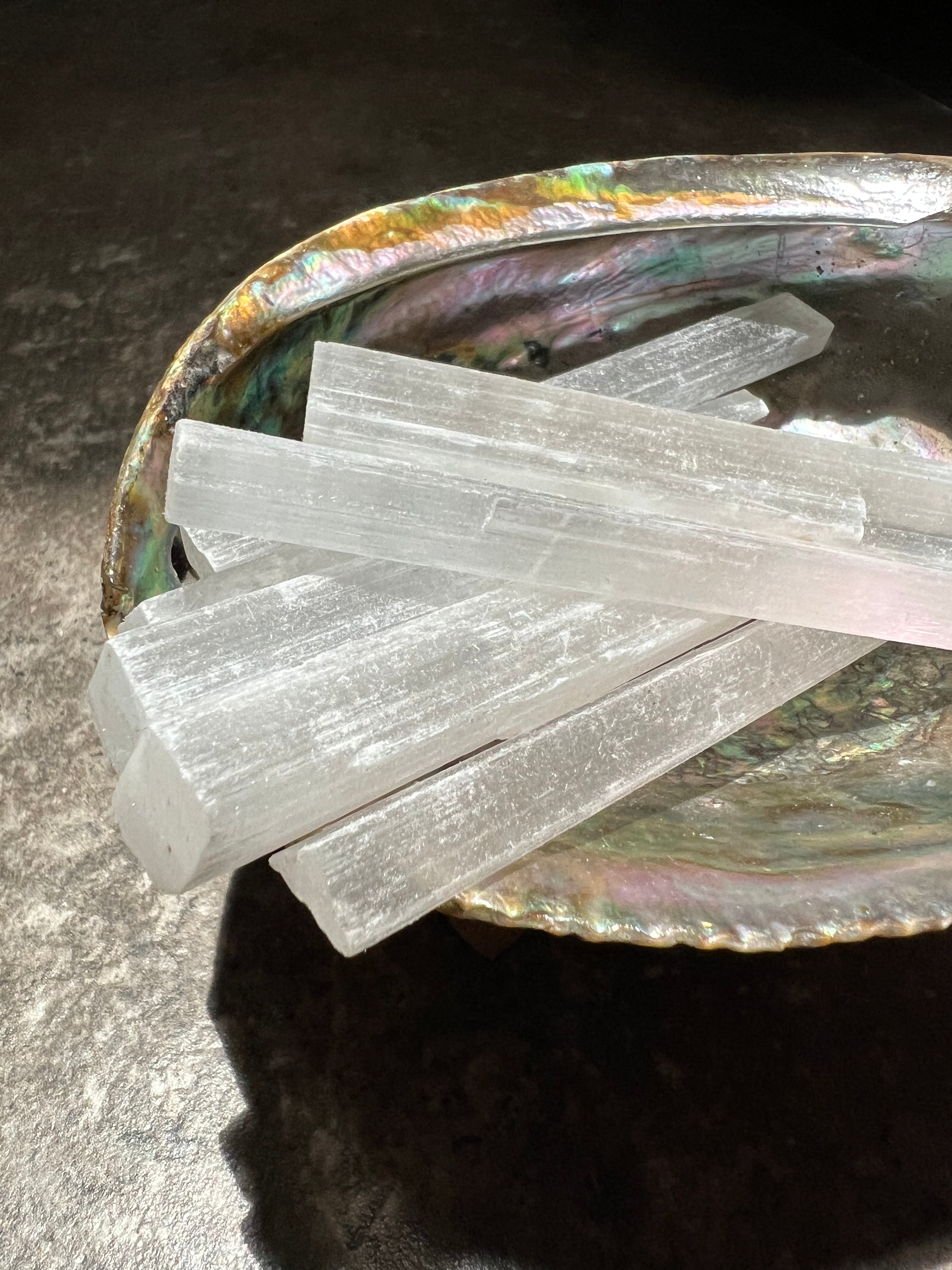Selenite is fast and effective at cleansing the auric field, it helps clear congested energies or negativity from your physical and etheric body. It also promotes the feelings of calm and serinity.