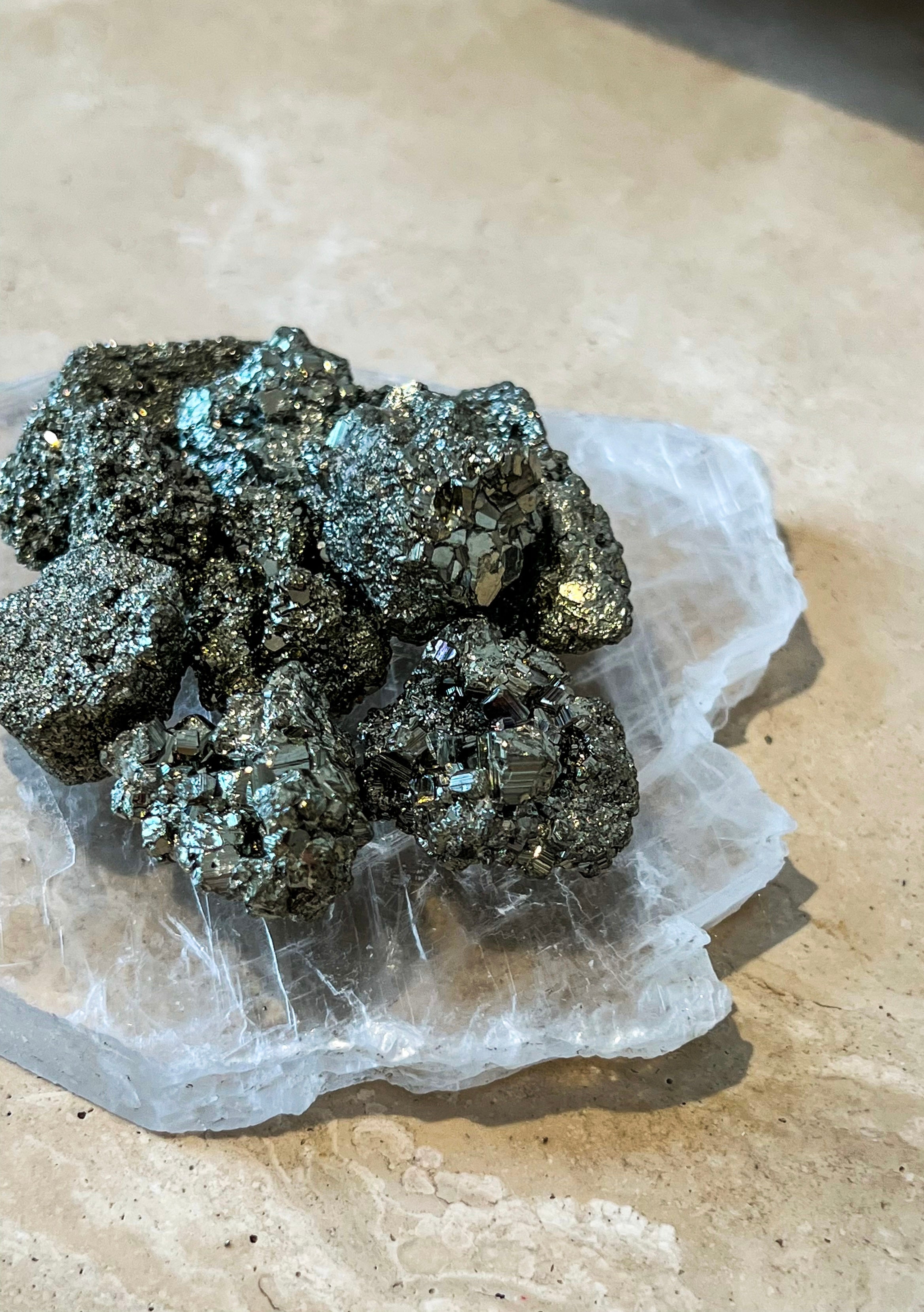 Place a piece of Pyrite in the left corner of your home, office, or even desk space, which is considered the wealth corner in Feng Shui, to welcome more prosperity into your life and cultivate an abundance mindset.